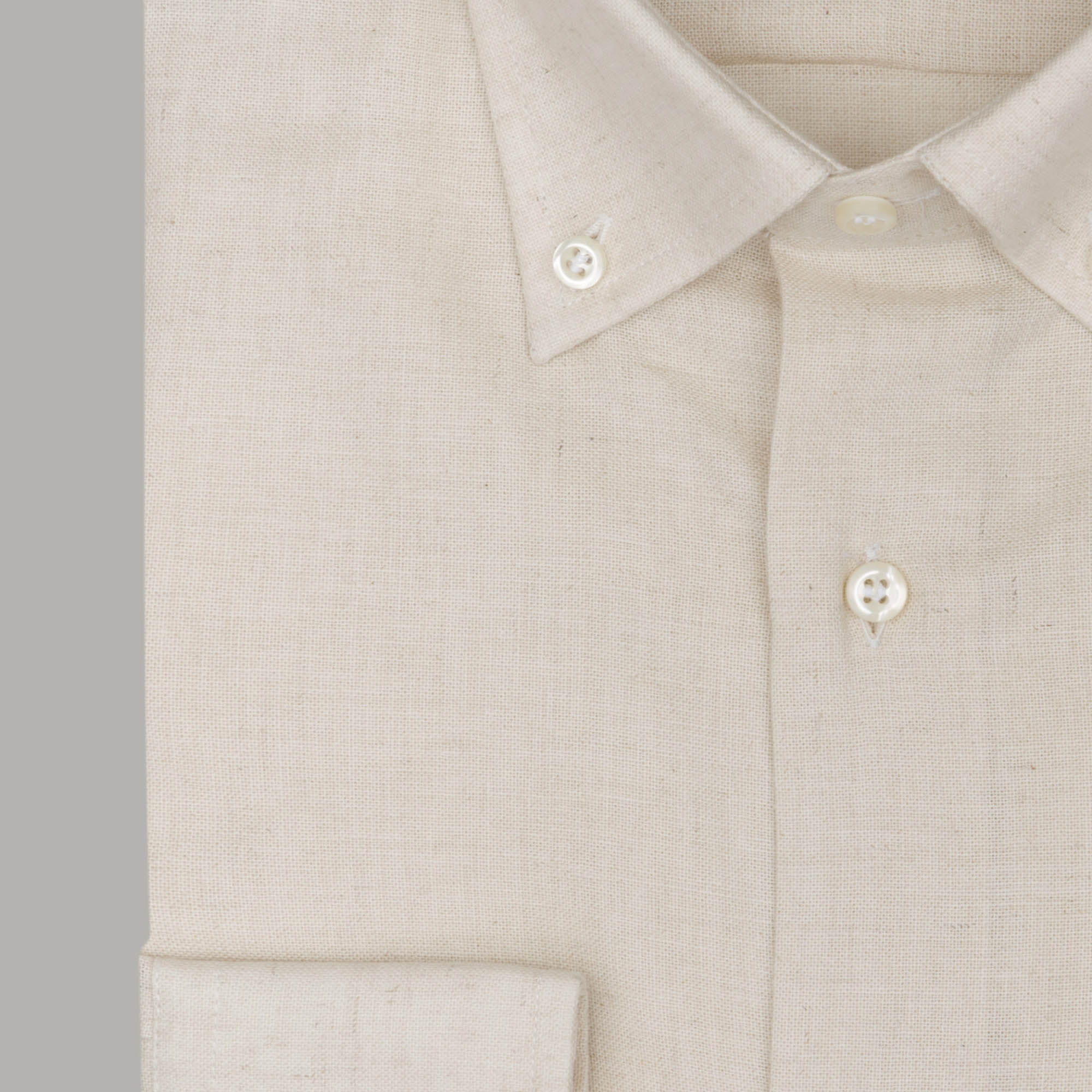 Tessuto 60% lino, 40% cotone, collo bottoncino, medio peso adatto per tutte le stagioni.